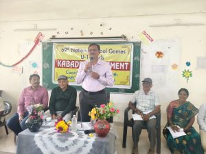 69వ జాతీయ స్కూల్స్ గేమ్స్ పై సమావేశం నిర్వహించిన డీఈవో69వ జాతీయ స్కూల్ గేమ్స్ (U-14) అండర్ 14 బాలికల కబడ్డీ టోర్నమెంట్కు సంబంధించి రాష్ట్ర స్కూల్ గేమ్స్ కార్యదర్శి భాను మూర్తి రాజుతో కలిసి జిల్లాలో ఉన్న ఎంఈవోలు, ప్రధానోపాధ్యాయులు, పిడీలు, పిఈటి లతో కలిసి శుక్రవారం సమన్వయ సమావేశం నిర్వహించారు. దీనిలో జిల్లా విద్యాశాఖ అధికారి సుబ్బారావు పాల్గొన్నారు . ఈ సందర్భంగా జిల్లాలో నిర్వహించే కబడ్డీ టోర్నమెంట్ కు సంబంధించిన వివరాలు తెలియజేశారు. అండర్ 14 బాలికల కబాడీ టోర్నమెంట్ నిర్వహణపై పిడీలకు పిఈటిలకు దిశా నిర్దేశం చేశారు.